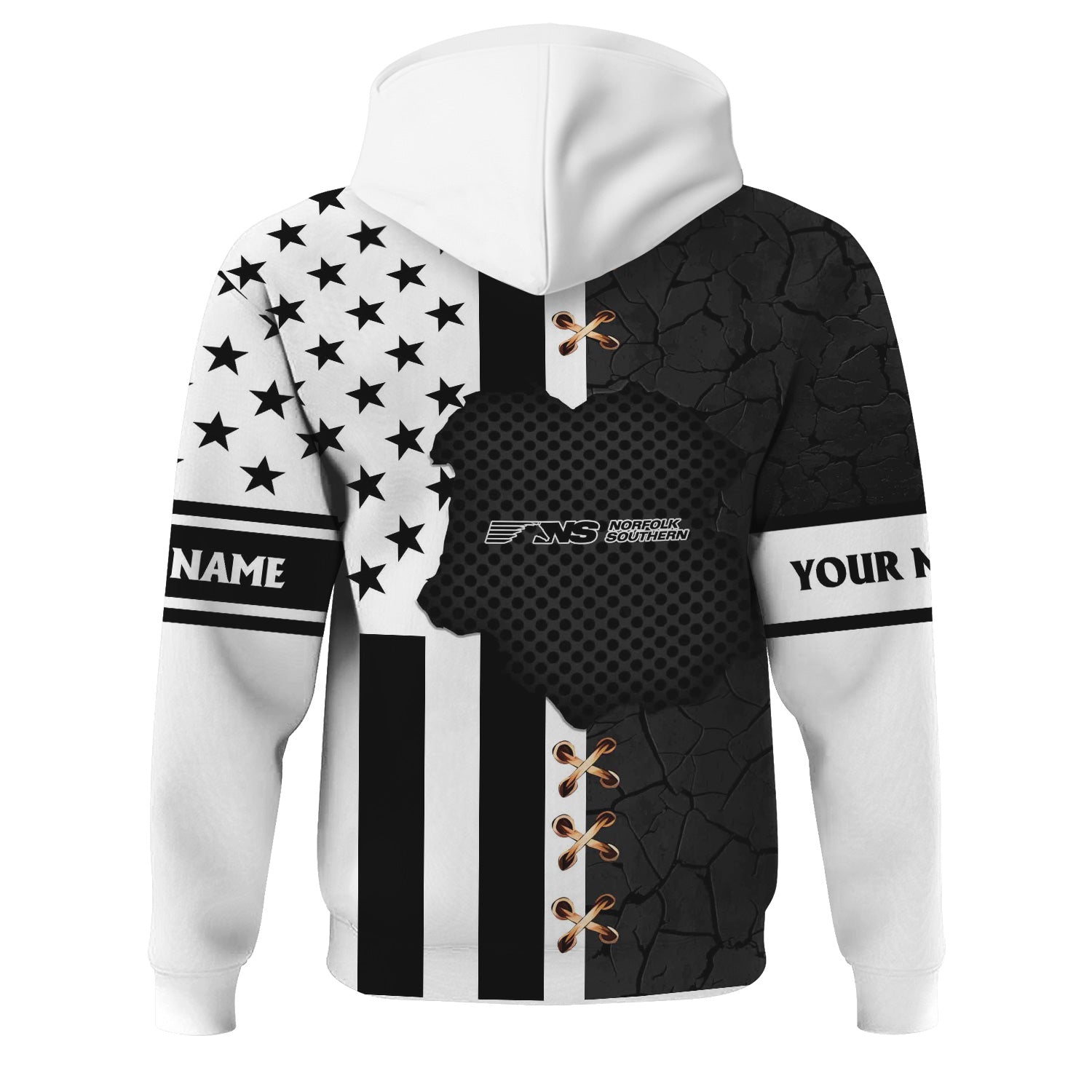 Railspirit Personalized Norfolk Southern Railway Hoodie American Flag with Crack Effect Train Zip Up Hoodie