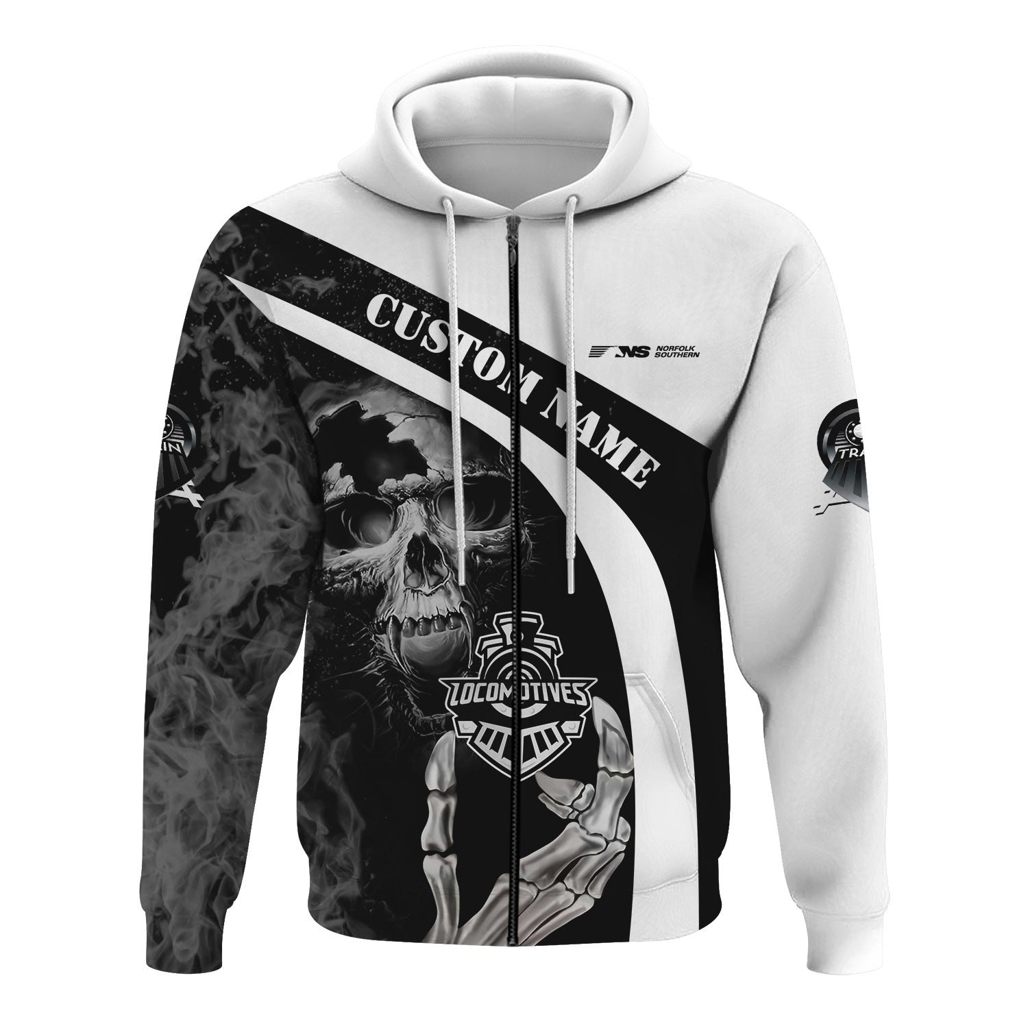 Railspirit Personalized Norfolk Southern Railway Hoodie Flame Skull Design Train Zip Up Hoodie for Locomotive Fans