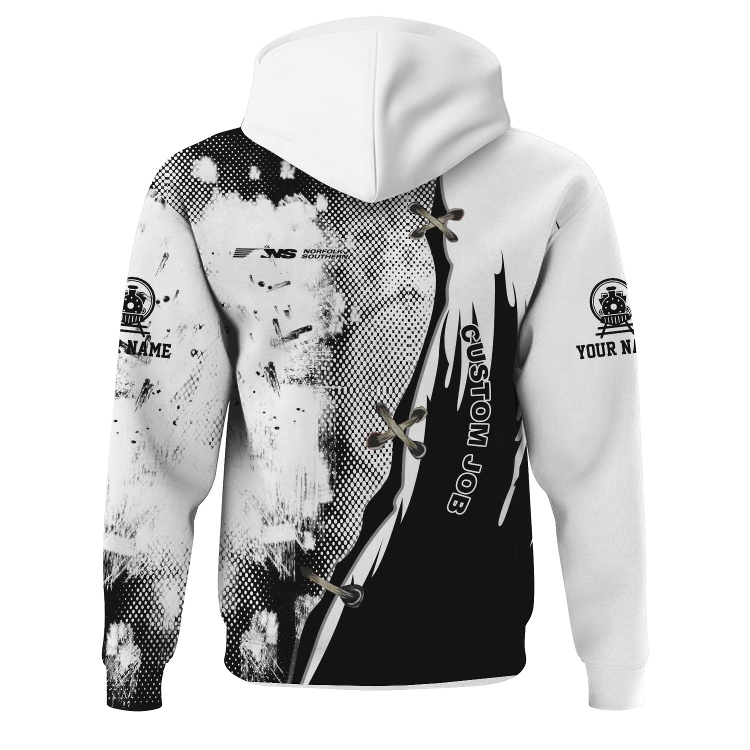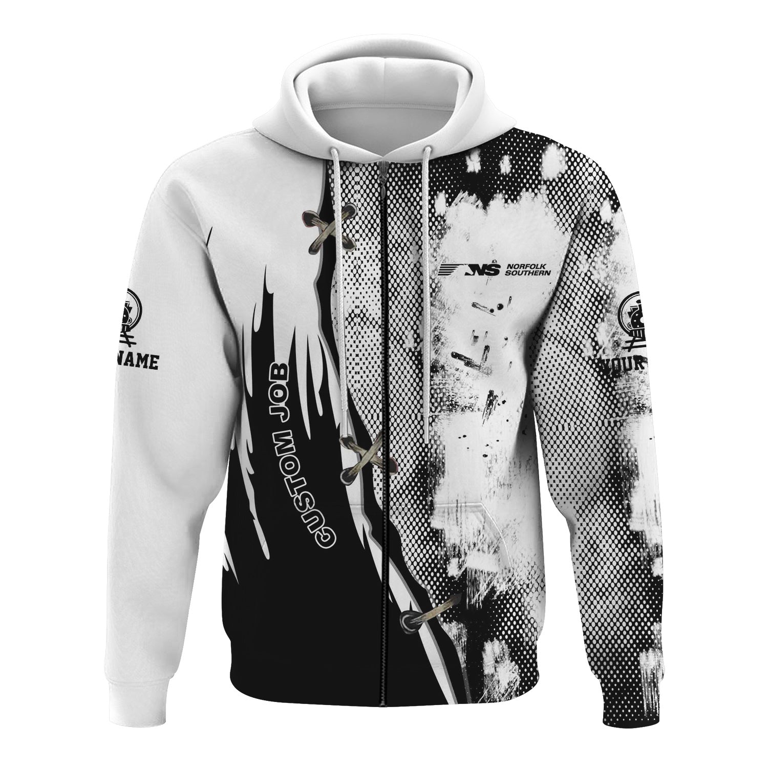 Railspirit Personalized Norfolk Southern Railway Hoodie Retro Stitches Design with Custom Position Train Zip Up Hoodie