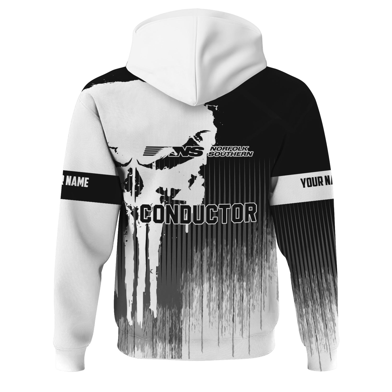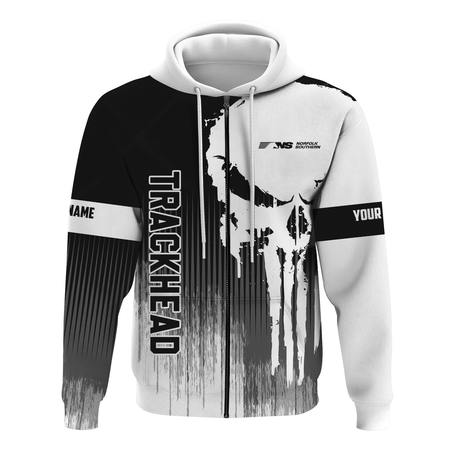 Railspirit Personalized Norfolk Southern Railway Hoodie Skull Design with Custom Job Train Zip Up Hoodie for Trackhead Crew