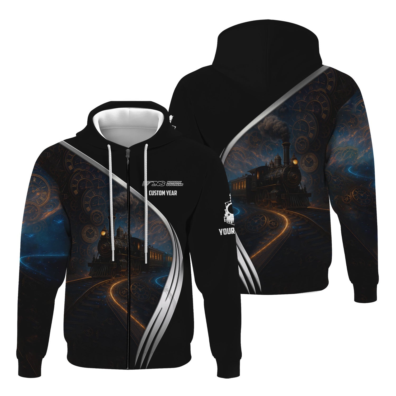 Railspirit Personalized Norfolk Southern Railway Hoodie Steampunk Locomotive with Custom Year Train Zip Up Hoodie