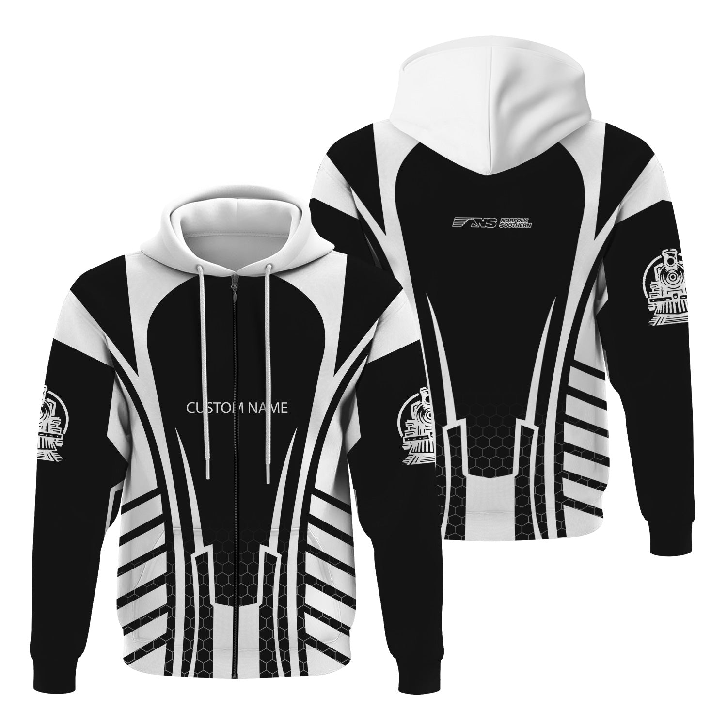 Railspirit Personalized Norfolk Southern Railway Hoodie Striped Railroad Style Train Zip Up Hoodie All Over Print
