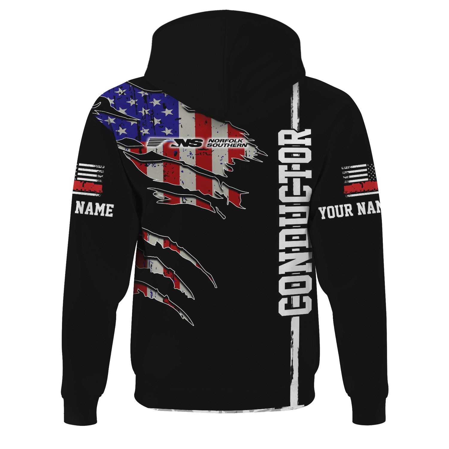Railspirit Personalized Norfolk Southern Railway Hoodie USA Flag Claw Art with Custom Job Train Zip Up Hoodie