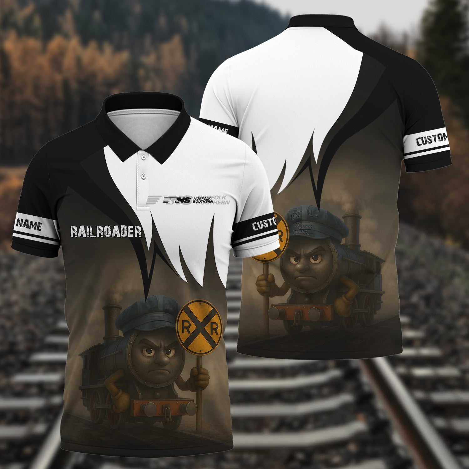 Railspirit Personalized Norfolk Southern Railway Polo Shirt Angry Train Polo Shirt Gift Idea For Train Lover