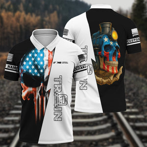 Railspirit Personalized Norfolk Southern Railway Polo Shirt Train Skull American Flag Shirt All Over Print
