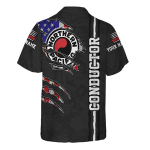 Railspirit Personalized Northern Pacific Railway Hawaiian Shirt USA Flag Claw Art with Custom Job Train Shirt