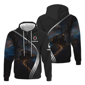 Railspirit Personalized Northern Pacific Railway Hoodie Steampunk Locomotive with Custom Year Train Zip Up Hoodie