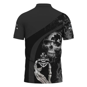 Railspirit Personalized Northern Pacific Railway Polo Shirt Flame Skull Design Train Shirt for Locomotive Fans