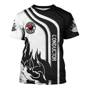 Railspirit Personalized Northern Pacific Railway T-Shirt Flame Design with Custom Job Position Train Shirt