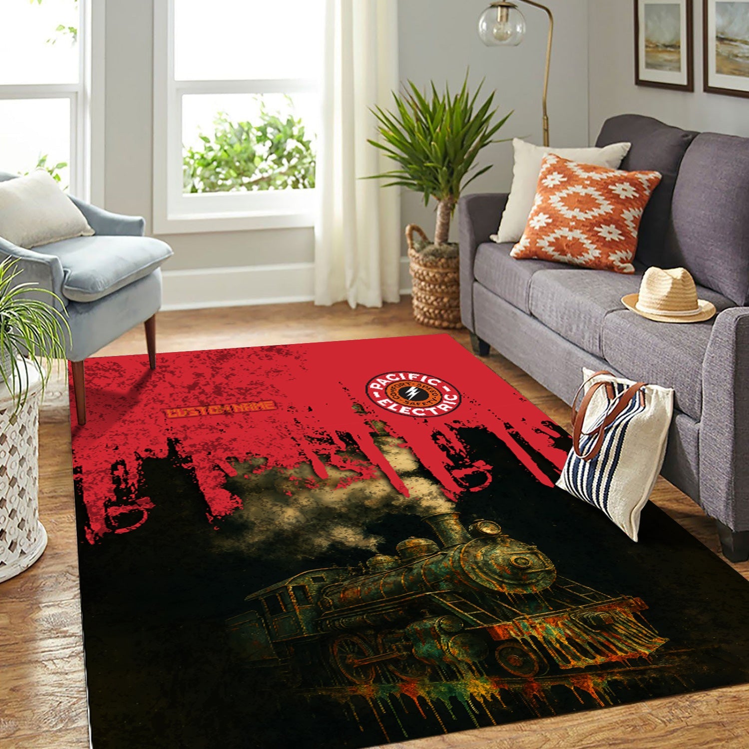Railspirit Personalized Pacific Electric Railroad Area Rug Vintage Train Art Style Rug For Locomotive Fans