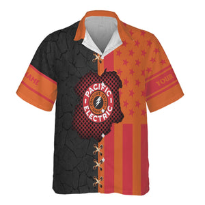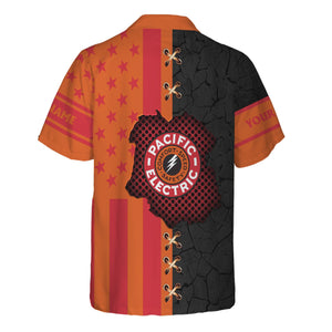 Railspirit Personalized Pacific Electric Railroad Hawaiian Shirt American Flag with Crack Effect Train Shirt