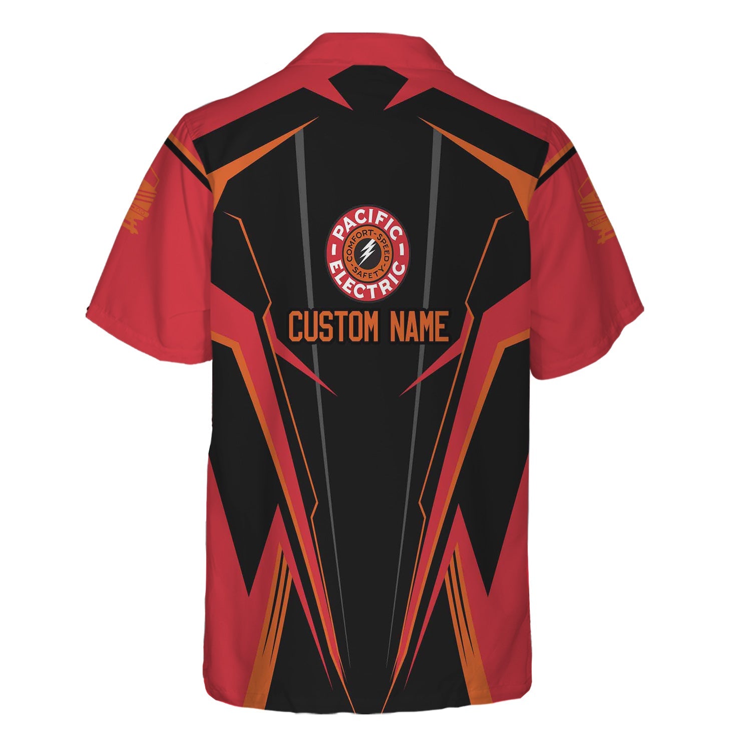 Railspirit Personalized Pacific Electric Railroad Hawaiian Shirt Lightning-Edge Design Train Shirt For Railroad Lovers