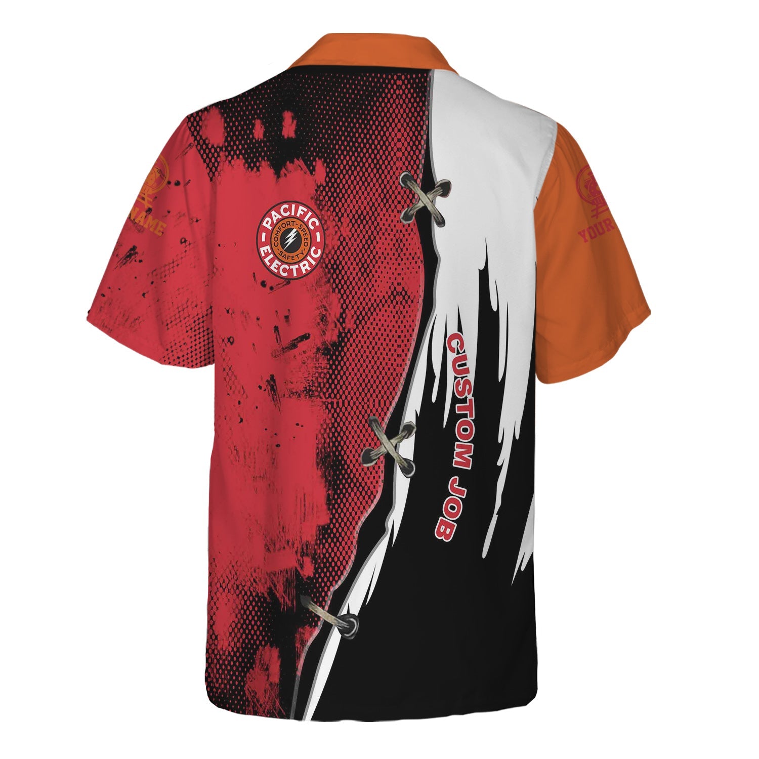 Railspirit Personalized Pacific Electric Railroad Hawaiian Shirt Retro Stitches Design with Custom Position Train Shirt