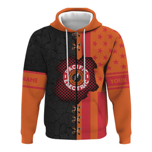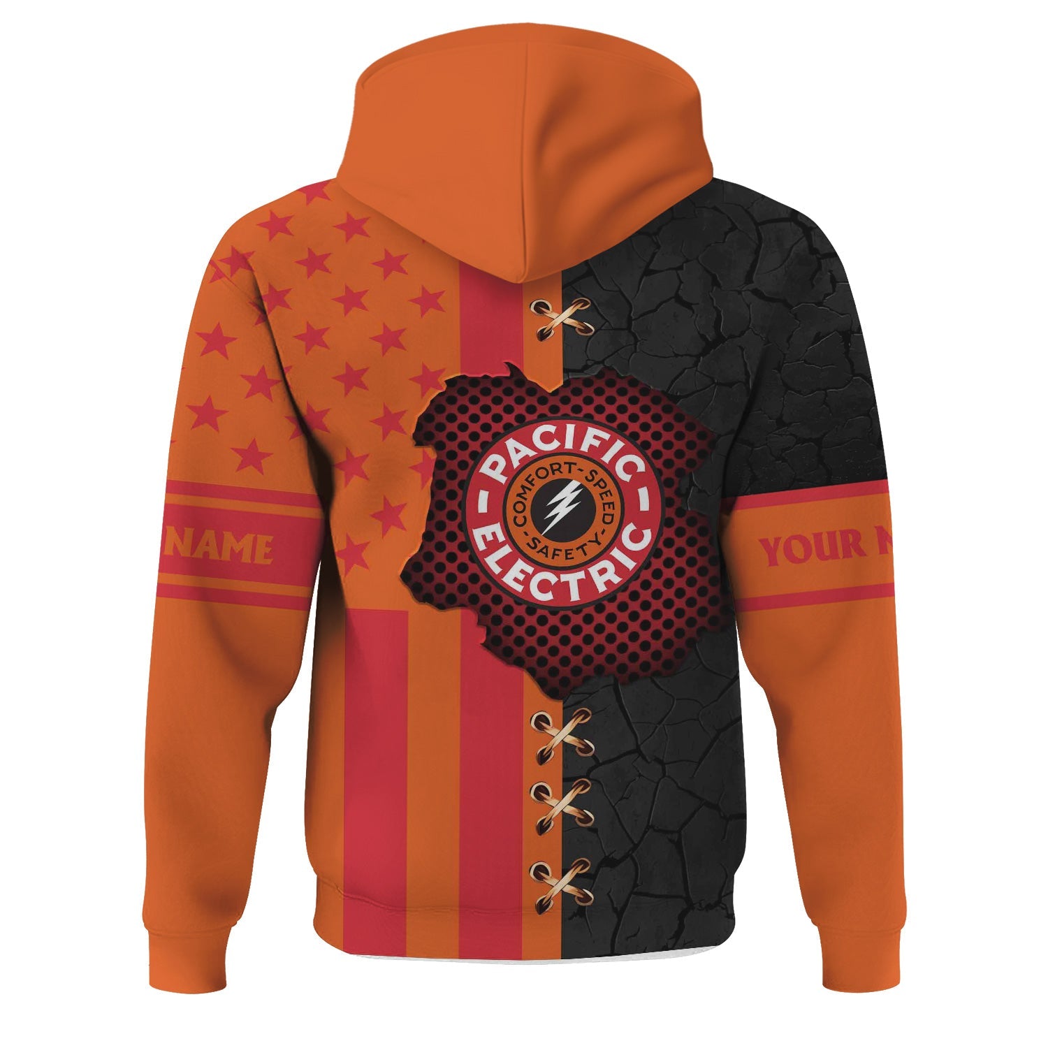 Railspirit Personalized Pacific Electric Railroad Hoodie American Flag with Crack Effect Train Zip Up Hoodie