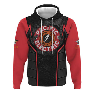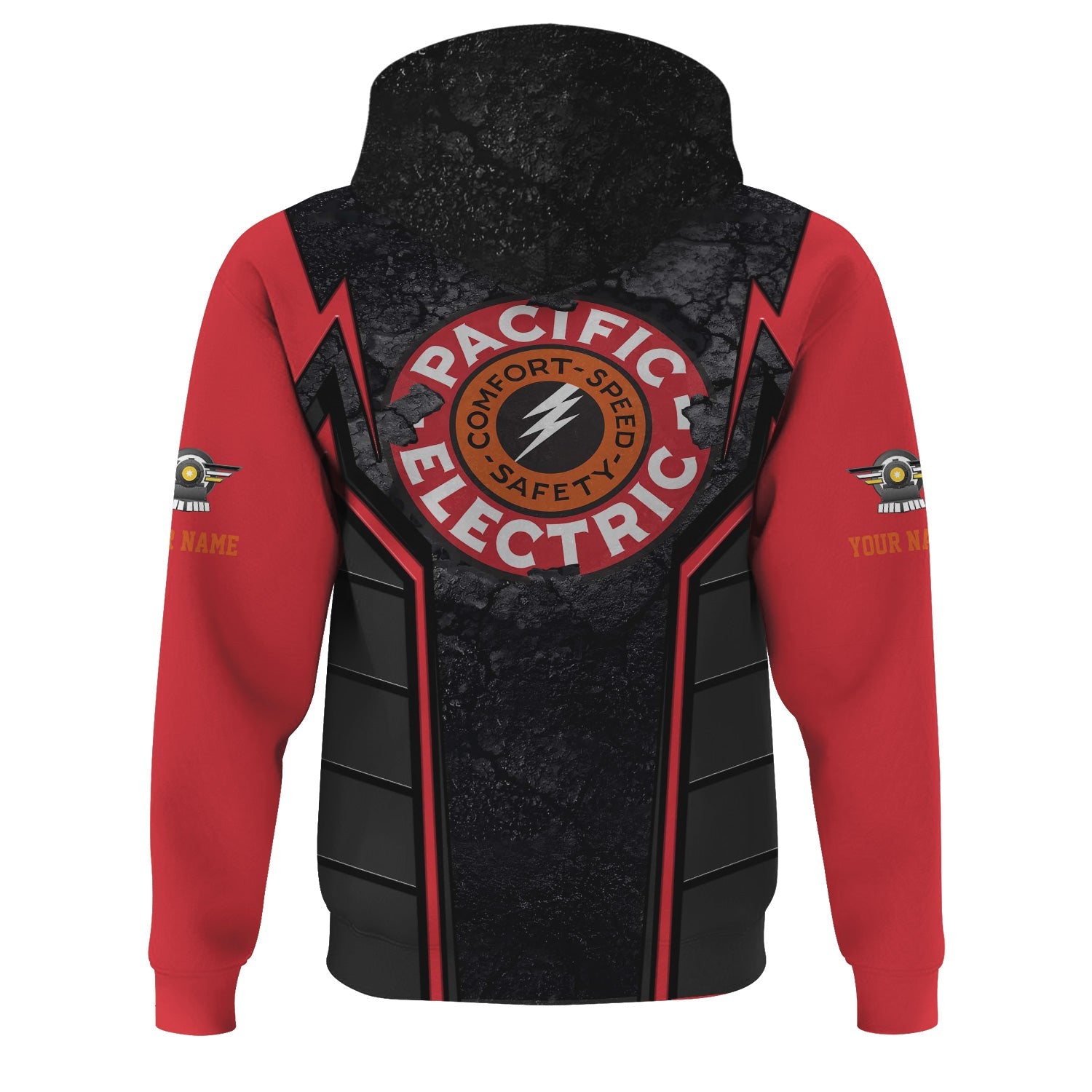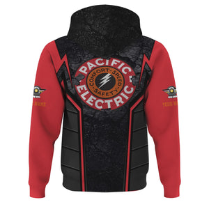 Railspirit Personalized Pacific Electric Railroad Hoodie Cracked Metal Design Train Zip Up Hoodie for Rail Enthusiasts