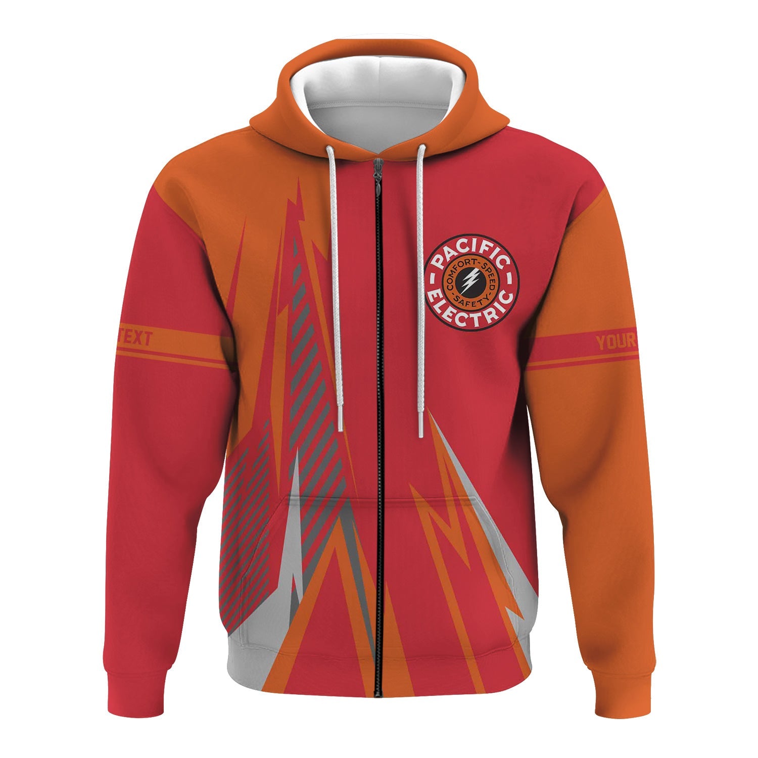 Railspirit Personalized Pacific Electric Railroad Hoodie Lightning-Inspired Railway Style Zip Up Hoodie For Train Lovers