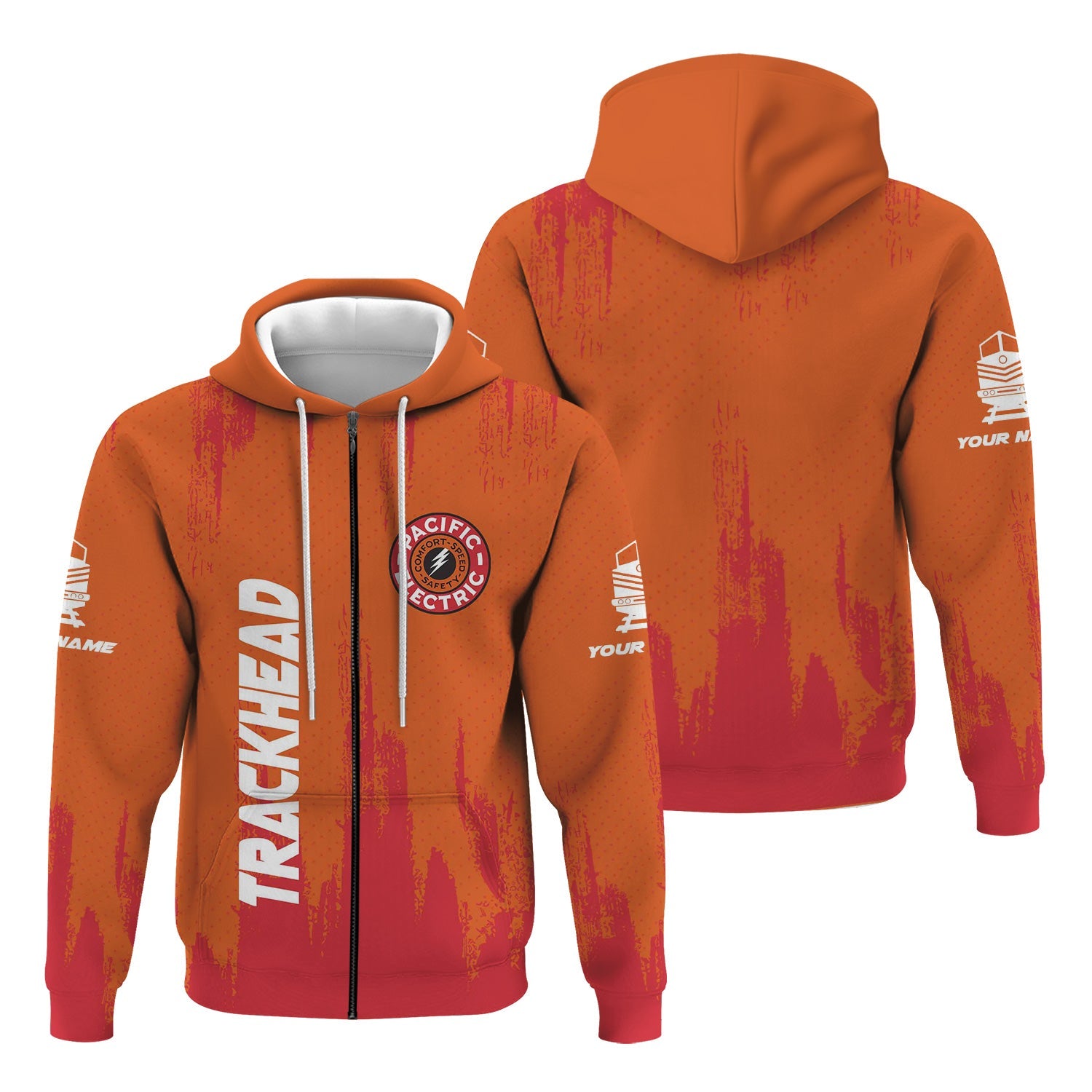 Railspirit Personalized Pacific Electric Railroad Hoodie Paint Impact Design Train Zip Up Hoodie for Trackhead