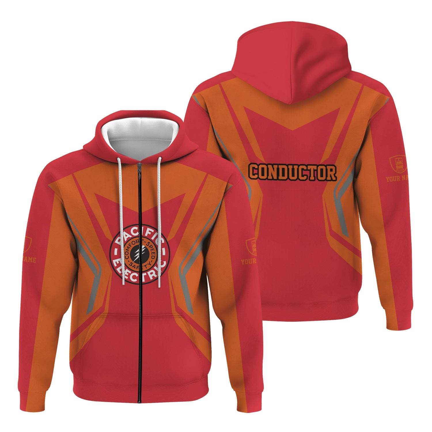 Railspirit Personalized Pacific Electric Railroad Hoodie Unique Style with Custom Job Train Zip Up Hoodie