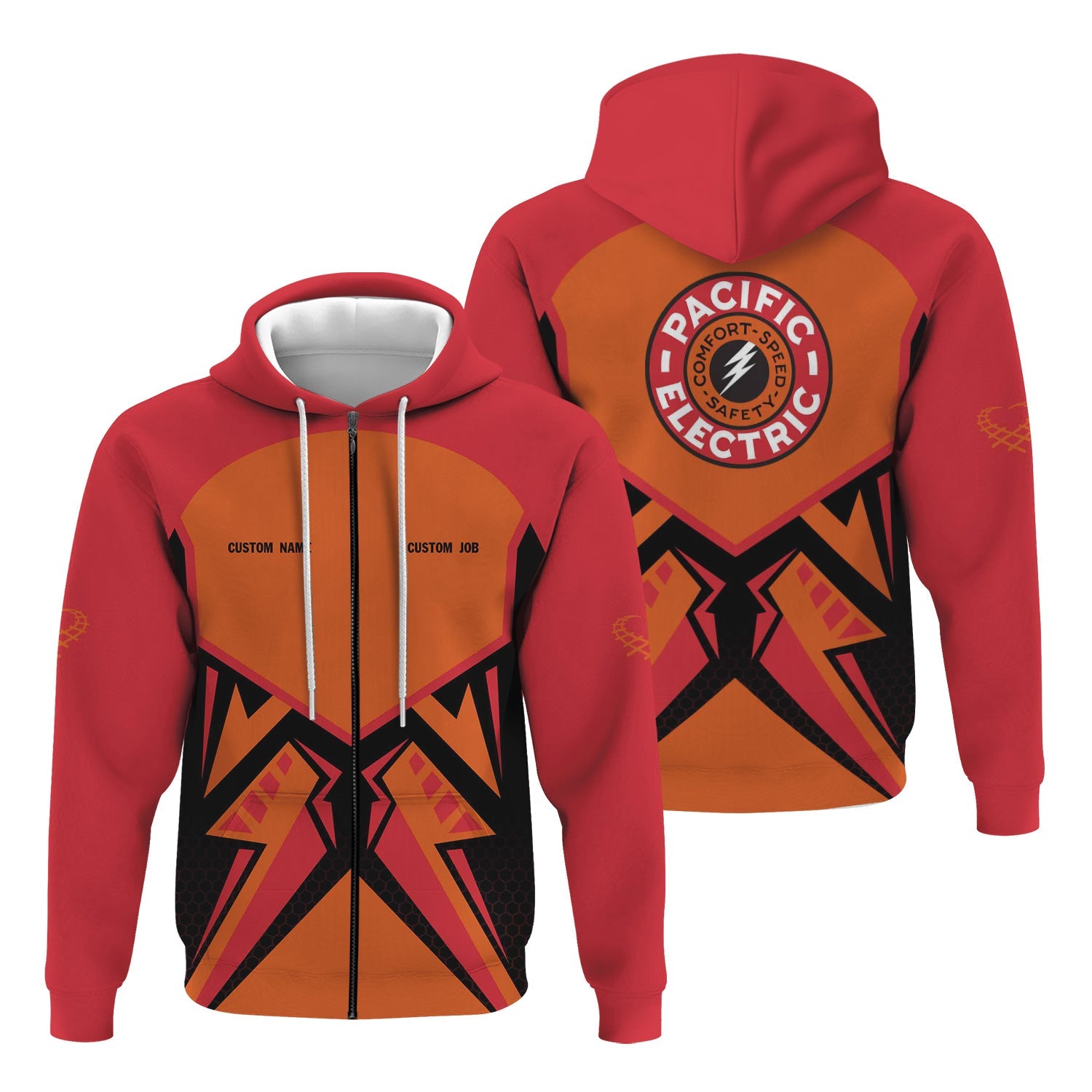 Railspirit Personalized Pacific Electric Railroad Hoodie Vibriant Style with Custom Position Train Zip Up Hoodie