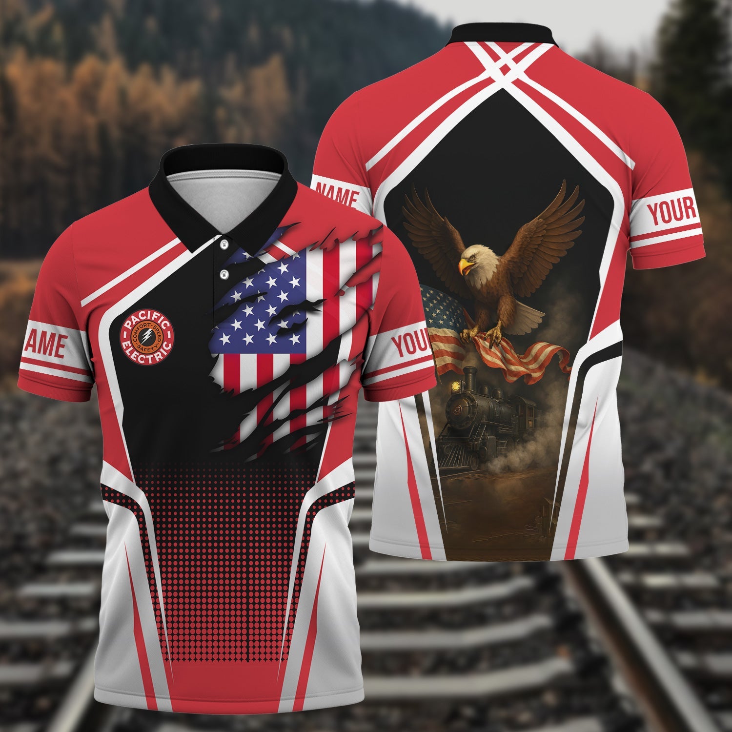 Railspirit Personalized Pacific Electric Railroad Polo Shirt American Eagle Vintage Train Shirt