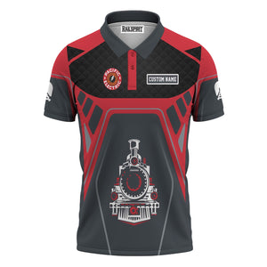 Railspirit Personalized Pacific Electric Railroad Polo Shirt Steam Locomotive Engine Graphic Train Shirt All Over Print