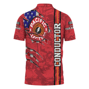 Railspirit Personalized Pacific Electric Railroad Polo Shirt USA Flag Claw Art with Custom Job Train Shirt