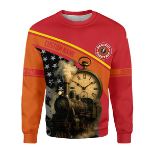 Railspirit Personalized Pacific Electric Railroad Sweatshirt Classic Steam Engine With Retro Pocket Watch Shirt All Over Print