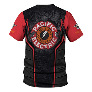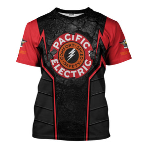 Railspirit Personalized Pacific Electric Railroad T-Shirt Cracked Metal Design Train Shirt for Rail Enthusiasts
