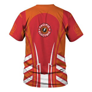 Railspirit Personalized Pacific Electric Railroad T-Shirt Striped Railroad Style Train Shirt All Over Print