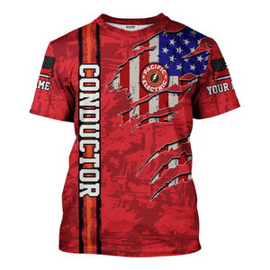 Railspirit Personalized Pacific Electric Railroad T-Shirt USA Flag Claw Art with Custom Job Train Shirt