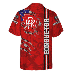 Railspirit Personalized Pennsylvania Railroad Hawaiian Shirt USA Flag Claw Art with Custom Job Train Shirt