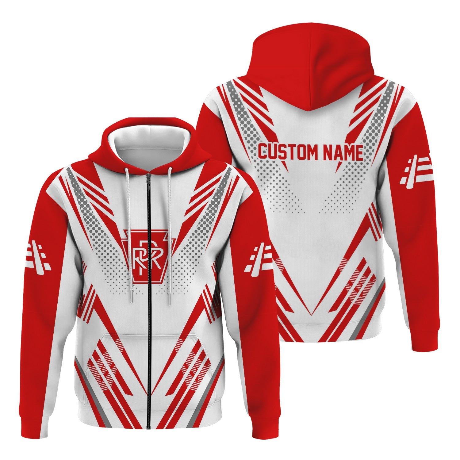 Railspirit Personalized Pennsylvania Railroad Hoodie Railroad Tribute Design Train Zip Up Hoodie for Train Lovers