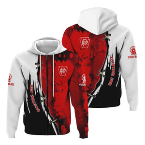 Railspirit Personalized Pennsylvania Railroad Hoodie Retro Stitches Design with Custom Position Train Zip Up Hoodie