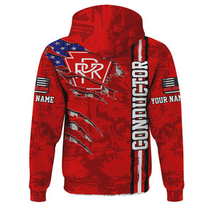 Railspirit Personalized Pennsylvania Railroad Hoodie USA Flag Claw Art with Custom Job Train Zip Up Hoodie