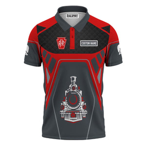 Railspirit Personalized Pennsylvania Railroad Polo Shirt Steam Locomotive Engine Graphic Train Shirt All Over Print