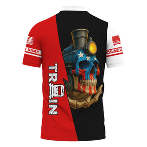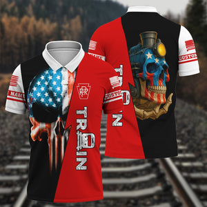 Railspirit Personalized Pennsylvania Railroad Polo Shirt Train Skull American Flag Shirt All Over Print