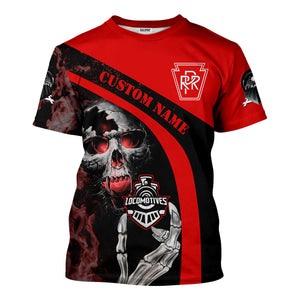Railspirit Personalized Pennsylvania Railroad T-Shirt Flame Skull Design Train Shirt for Locomotive Fans