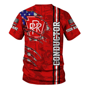 Railspirit Personalized Pennsylvania Railroad T-Shirt USA Flag Claw Art with Custom Job Train Shirt