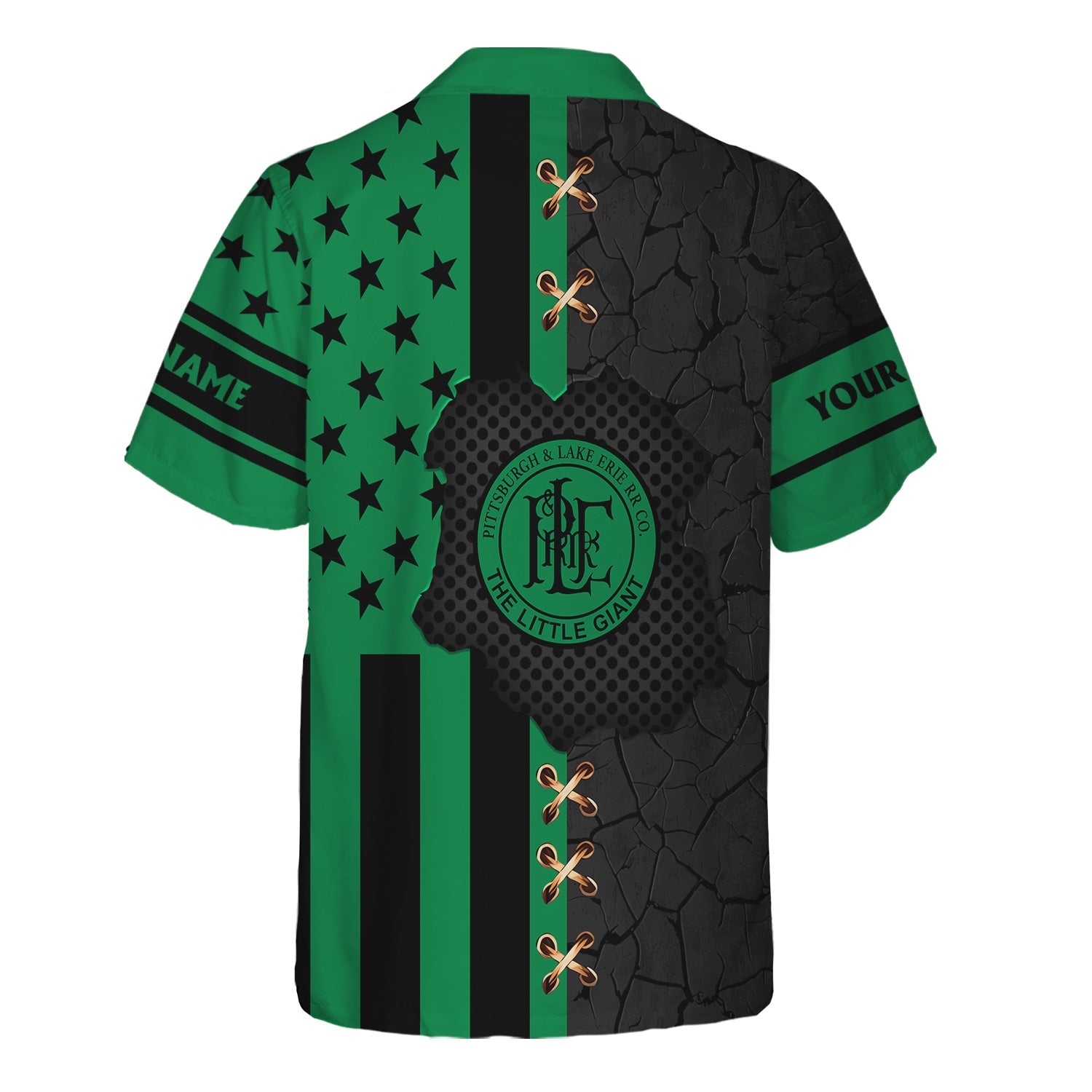 Railspirit Personalized Pittsburgh And Lake Erie Railroad Hawaiian Shirt American Flag with Crack Effect Train Shirt