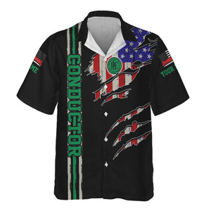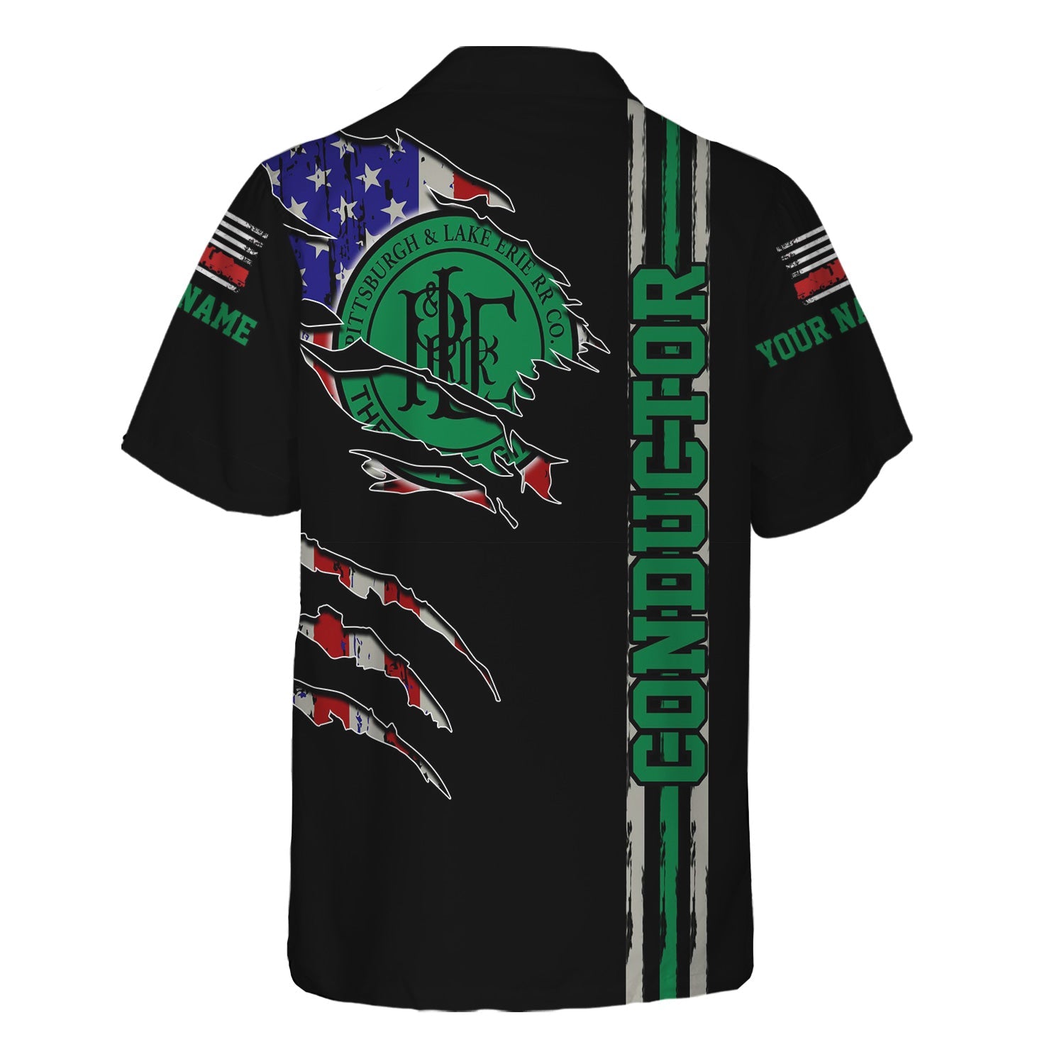 Railspirit Personalized Pittsburgh And Lake Erie Railroad Hawaiian Shirt USA Flag Claw Art with Custom Job Train Shirt