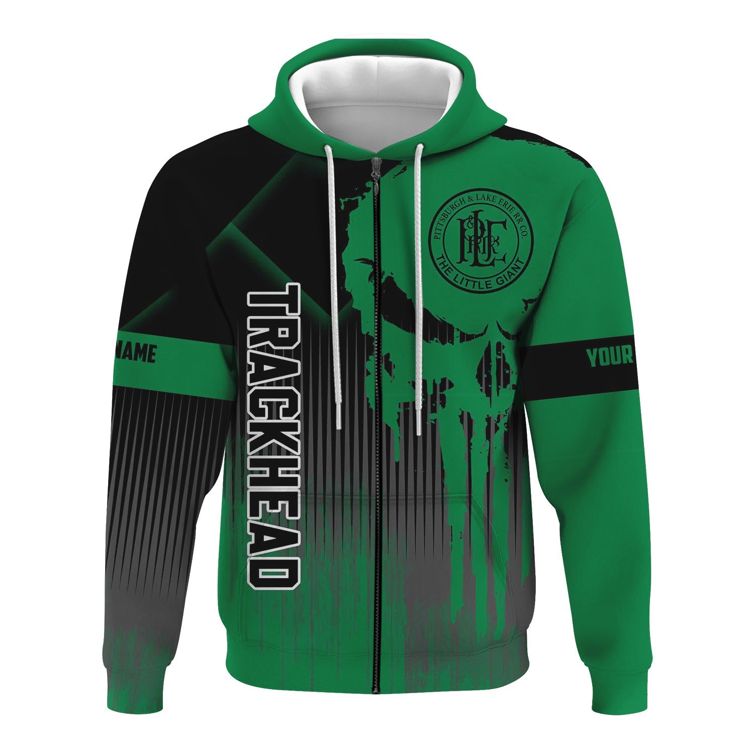 Railspirit Personalized Pittsburgh And Lake Erie Railroad Hoodie Skull Design with Custom Job Train Zip Up Hoodie for Trackhead Crew