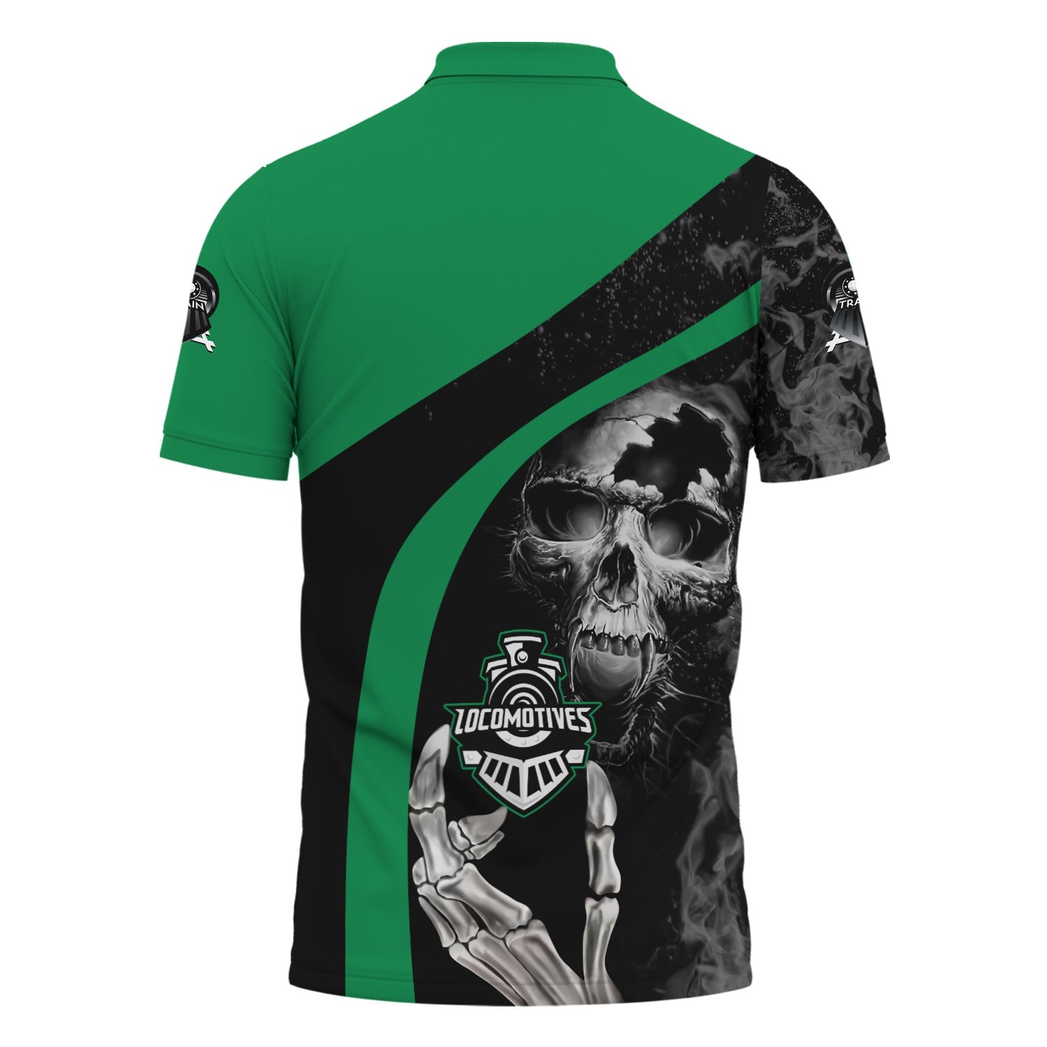 Railspirit Personalized Pittsburgh And Lake Erie Railroad Polo Shirt Flame Skull Design Train Shirt for Locomotive Fans