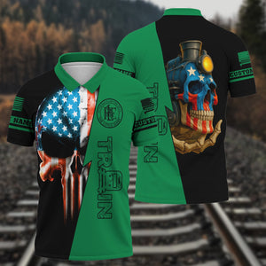 Railspirit Personalized Pittsburgh And Lake Erie Railroad Polo Shirt Train Skull American Flag Shirt All Over Print
