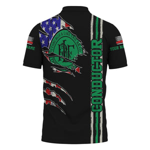 Railspirit Personalized Pittsburgh And Lake Erie Railroad Polo Shirt USA Flag Claw Art with Custom Job Train Shirt
