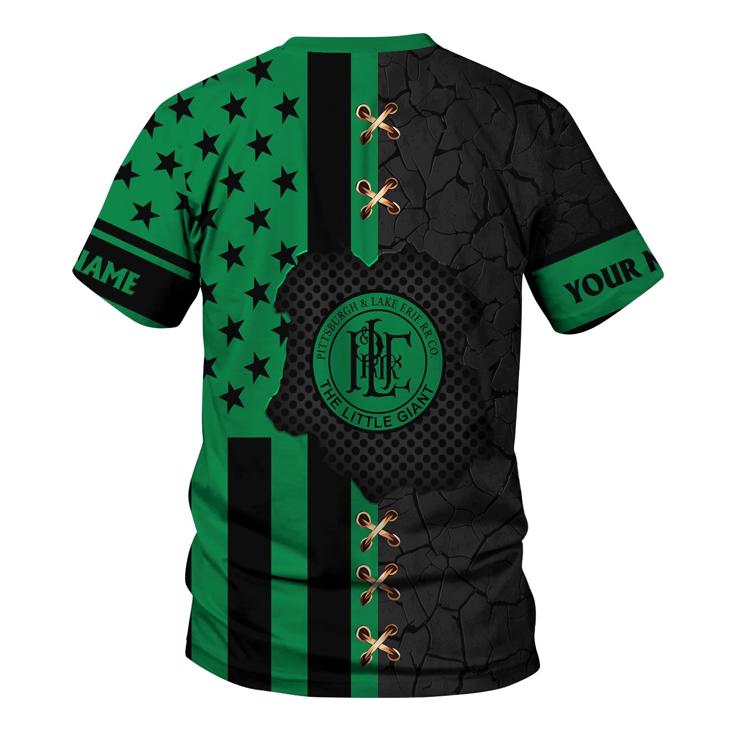 Railspirit Personalized Pittsburgh And Lake Erie Railroad T-Shirt American Flag with Crack Effect Train Shirt