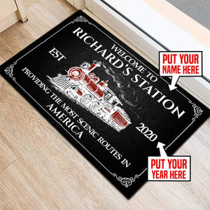 Railspirit Personalized Railroad Station Area Rug Gift Idea For Train Lovers