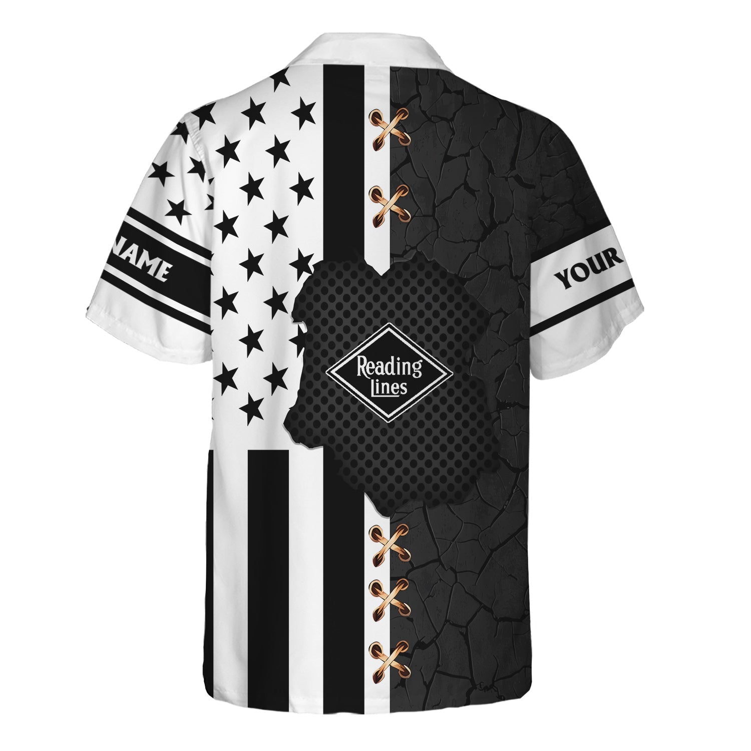 Railspirit Personalized Reading Railroad Hawaiian Shirt American Flag with Crack Effect Train Shirt