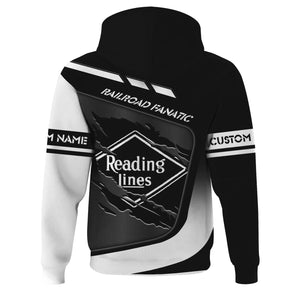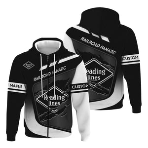 Railspirit Personalized Reading Railroad Hoodie Ripped Texture Style Train Zip Up Hoodie For Railroad Fanatic