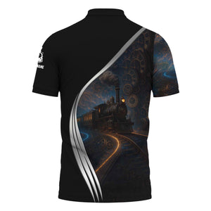 Railspirit Personalized Reading Railroad Polo Shirt Steampunk Locomotive with Custom Year Train Shirt