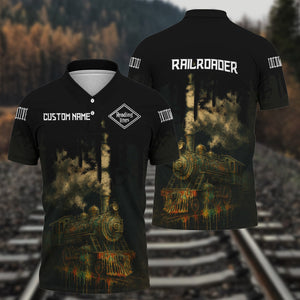 Railspirit Personalized Reading Railroad Polo Shirt Vintage Train Art Style Shirt For Locomotive Fans